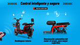 - Seguridad inteligente: Corte automático al cargar, alarma antirrobo y frenos de disco para una respuesta más rápida y precisa.