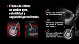 - Sistema de iluminación LED: Faros delanteros de alta luminosidad y luces traseras.