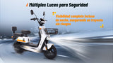 - Sistema de iluminación: Incluye luz trasera, luz de freno, intermitentes delanteros y luces de circulación diurna para máxima visibilidad.